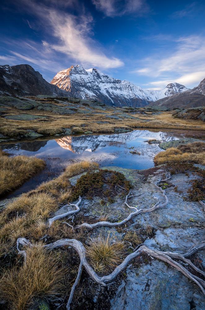 « Racines » est une photo de paysage de montagne que j’ai réalisée en 2013 lors d’une soirée en refuge dans le Parc National de la Vanoise.