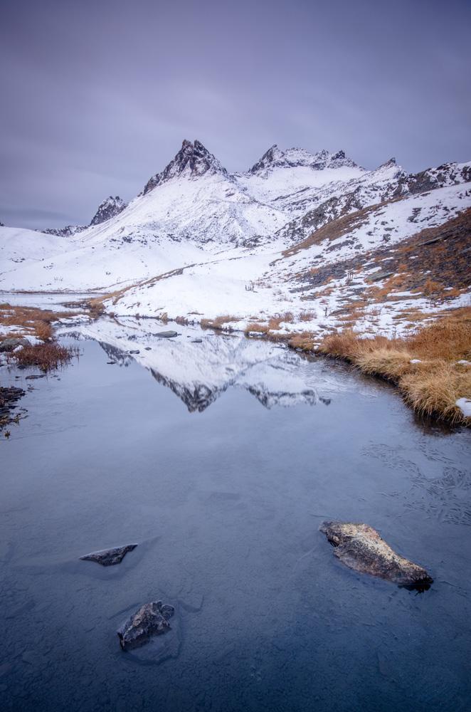 « Trois points de réflexion » est une photo de paysage de montagne que j’ai réalisée en 2015 lors d’un bivouac sur les hauteurs du col du Petit Saint Bernard.